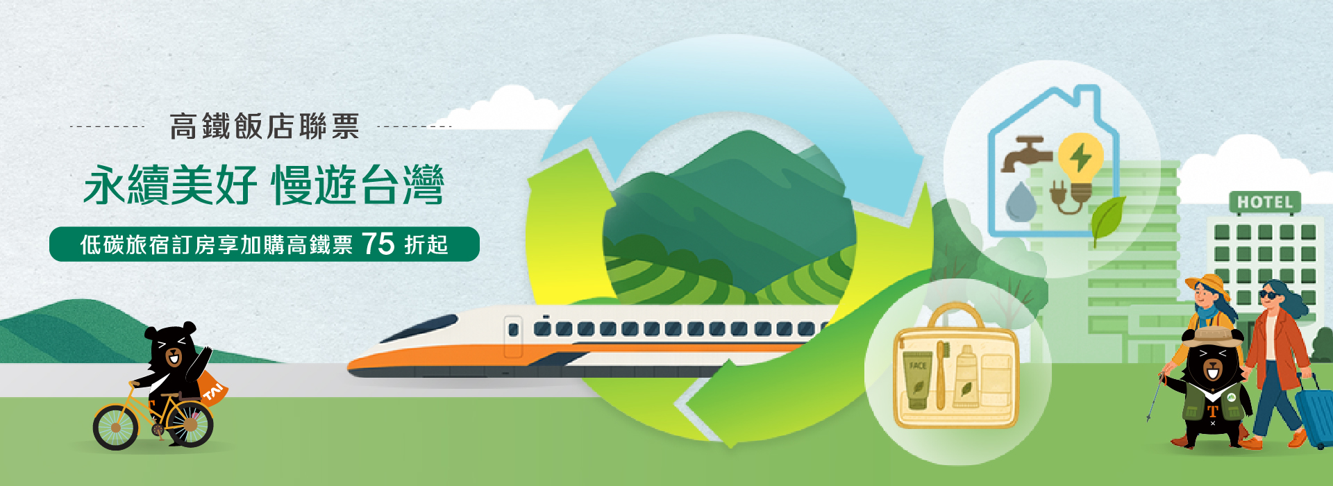 •本飯店通過銀級環保標章,凡以手機取票並完成搭乘,每票再加贈100點TGo會員點數,詳情請見活動網頁。