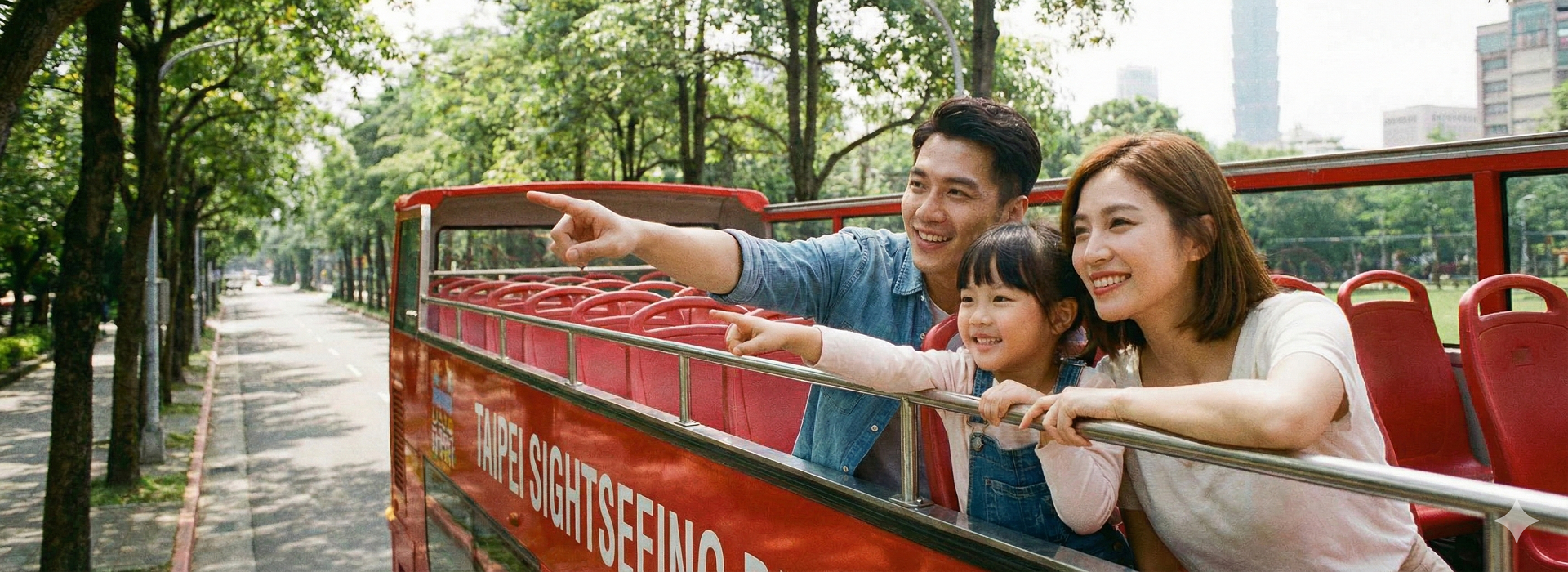 來一場沉浸式的城市輕旅行,透過搭乘臺北市最具有特色的雙層觀光巴士,帶領旅人以180度的視角飽覽美麗的城市景致,感受這座充滿活力與能量的城市所帶來的獨特魅力。