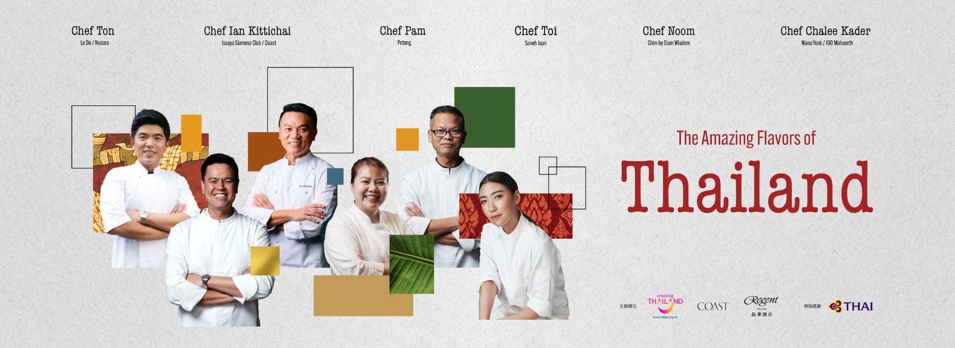 「The Amazing Flavor of Thailand」住房專案,為您安排入住豪華客房,並尊享當代海岸料理餐廳 COAST 與泰國觀光局合作推出的名廚套餐。此企劃首度集結多位泰國米其林與「亞洲 50 最佳餐廳」主廚,以時令海鮮結合摩登泰式風味,匯聚多家曼谷預約困難名店的人氣菜色。專案同步提供專屬貴賓禮遇,讓您於品味期間限定料理的同時,也能享受恬適的休閒時光,開啟一場嶄新而精彩的味覺旅程。